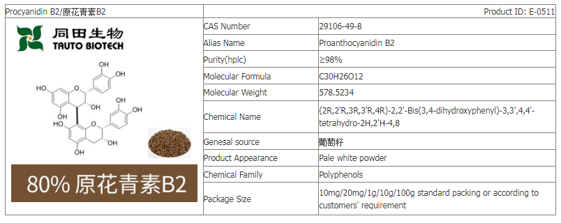 | 內容 | 上海同田 80% 原花青素B2 29106-49-8 1g-10kg 源頭廠家 95% 原花青素B2 & 80% 原花青素B2 純度含量可定制
